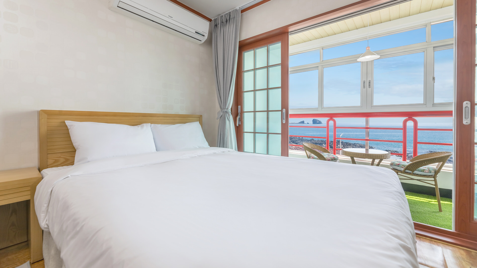 - 집기품목 : TV, 금연, 취사시설/도구, 커피포트, 바디워시, 드라이기, 에어컨, 전기밥솥, 타월, 침대방, 전자레인지, 인덕션, 와이파이, 샴푸, 린스, 냉장고, 욕실용품, 바다전망